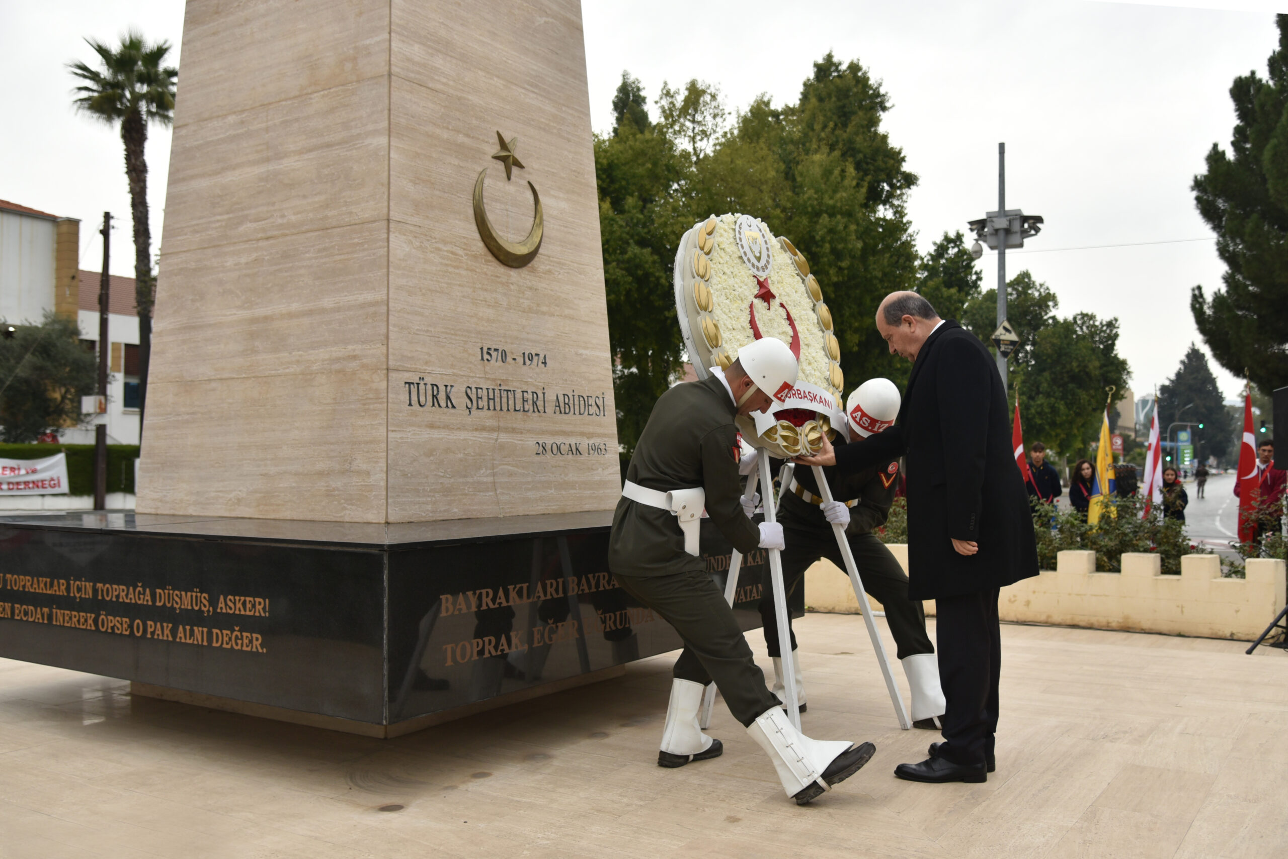 Anma törenine, Cumhurbaşkanı Ersin Tatar, Meclis Başkanı Zorlu Töre, Başbakan Ünal Üstel, Yüksek Mahkeme Başkanı Narin Ferdi Şefik, 2. Cumhurbaşkanı Mehmet Ali Talat, Türkiye Cumhuriyeti Lefkoşa Büyükelçisi Metin Feyzioğlu, Kıbrıs Türk Barış Kuvvetleri Komutanı Tümgeneral Sebahattin Kılınç, Güvenlik Kuvvetleri Komutanı Tümgeneral Osman Aytaç, Ana Muhalefet CTP Genel Başkanı Tufan Erhürman, bakanlar, milletvekilleri, belediye başkanları, siyasi parti başkanları, askeri erkan, muharip dernekler ve diğer yetkililer katıldı.