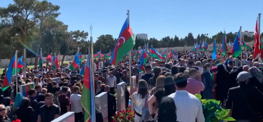 Azerbaycan İkinci Karabağ Savaşı’nın birinci yılında şehitlerini andı. Saatler 12.00’yi gösterdiğinde ülke genelinde saygı duruşunda bulunuldu. Ülkedeki tüm ibadethanelerde İkinci Karabağ Savaşı’nda vatanları için canlarını veren 2 bin 907 şehidi anma programları düzenlendi. Azerbaycanlılar da şehitliklere akın etti.