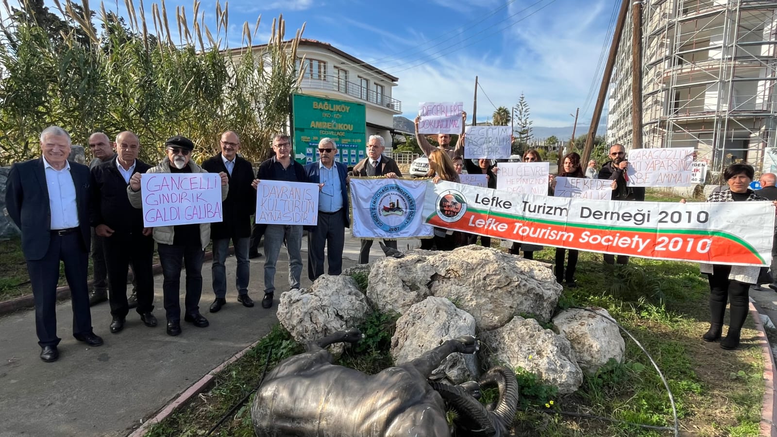 Lefke Turizm Derneği tarafından 2021 yılında Bağlıköy kavşağına yerleştirilen Kıbrıs endemiği muflon heykelinin yerinden sökülerek zarara uğratılması protesto etti.