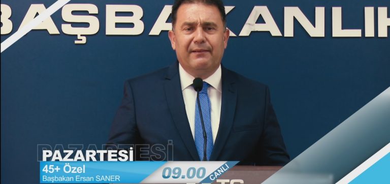 Başbakan Ersan Saner, bugün BRT’de katılacağı 45+ programında gündemdeki konulara ilişkin soruları yanıtlayacak.