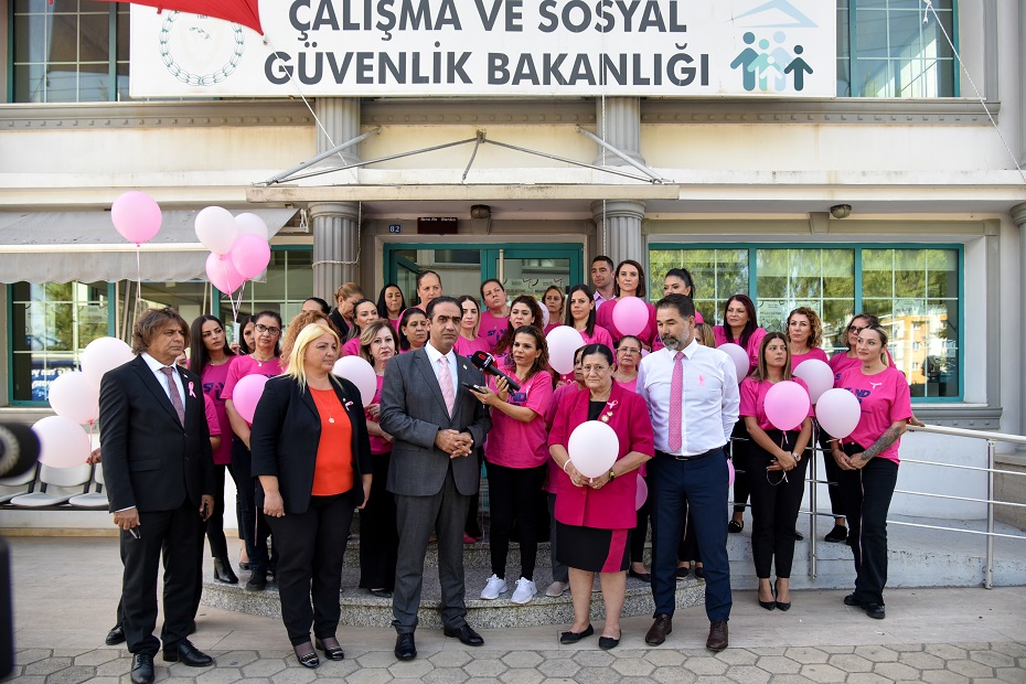 Çalışma ve Sosyal Güvenlik Bakanlığı personeli, 1-31 Ekim Meme Kanseri Farkındalık Ayı’na dikkat çekmek amacıyla pembe giyerek gökyüzüne pembe balon uçurdu.