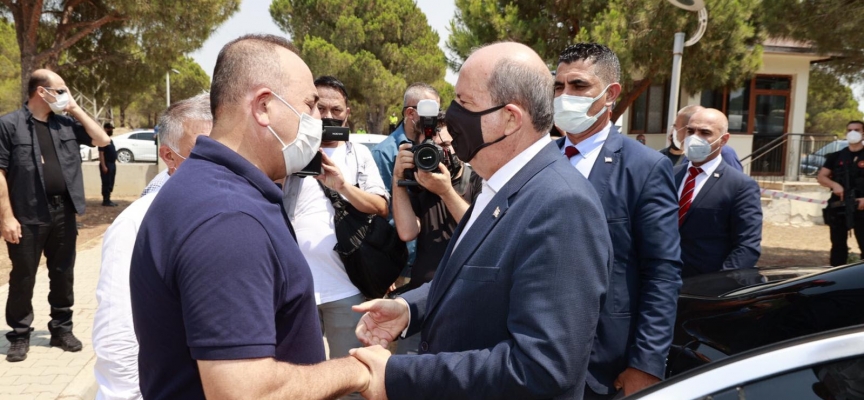 Cumhurbaşkanı Ersin Tatar yangında zarar gören Manavgat’ın Kalemler mahallesinde TC Dışişleri Bakanı Mevlüt Çavuşoğlu ile birlikte açıklamalarda bulundu.