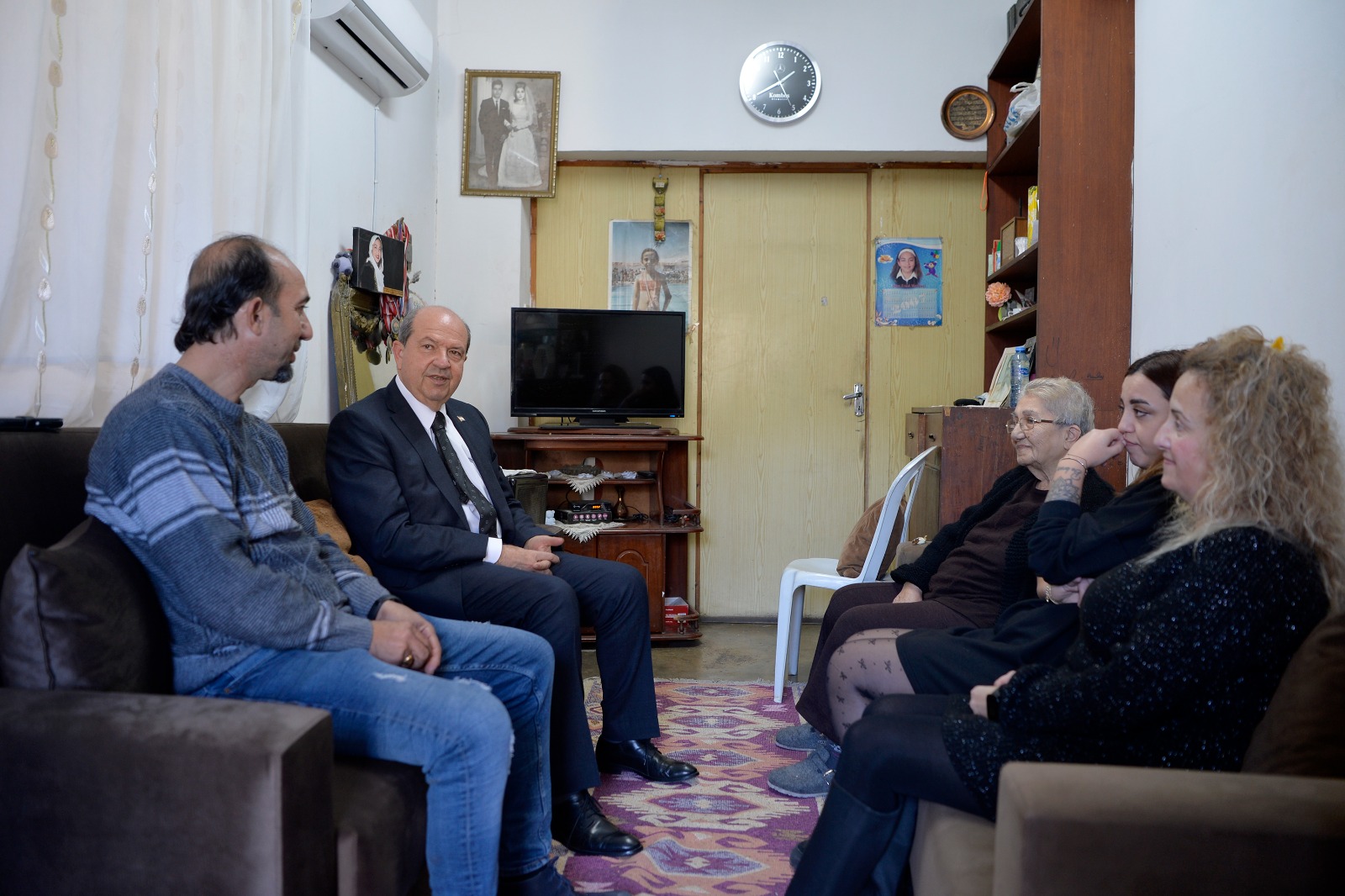 Cumhurbaşkanı Ersin Tatar, Şehit Hüseyin Çamsöken’in eşi Tuncay Çamsöken ve Şehit İsmail Bekir’İn eşi Fatma İsmailoğlu’nu ziyaret etti
