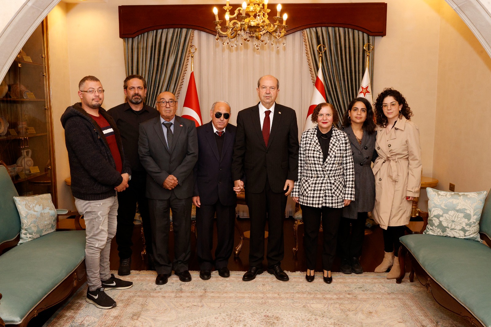 Cumhurbaşkanı Ersin Tatar, 3 Aralık Engelliler Dayanışma Günü dolayısıyla Derviş Yücetürk başkanlığındaki Kıbrıs Türk Engelliler Federasyonu yönetimini kabul ederek görüştü.