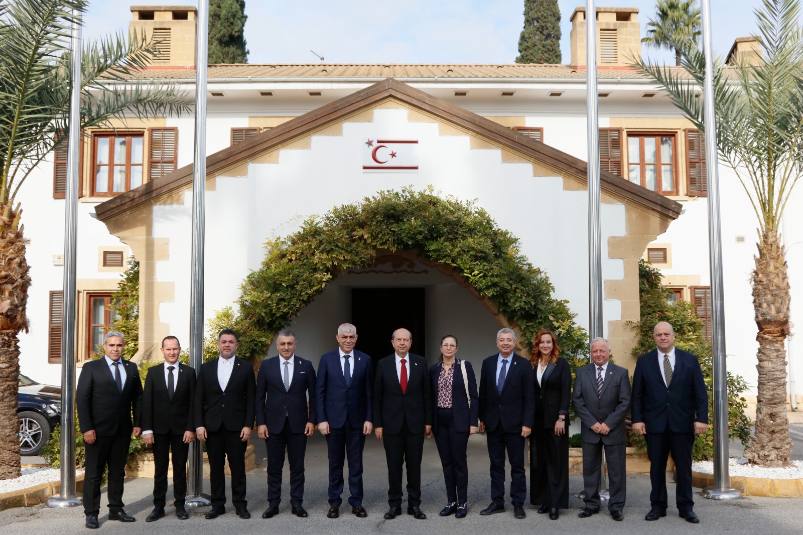 Cumhurbaşkanı Ersin Tatar, 12-18 Aralık Yerli Üretim Haftası dolayısıyla Kıbrıs Türk Sanayi Odası Başkanı Ali Kamacı ve yönetim kurulu üyelerini kabul etti.