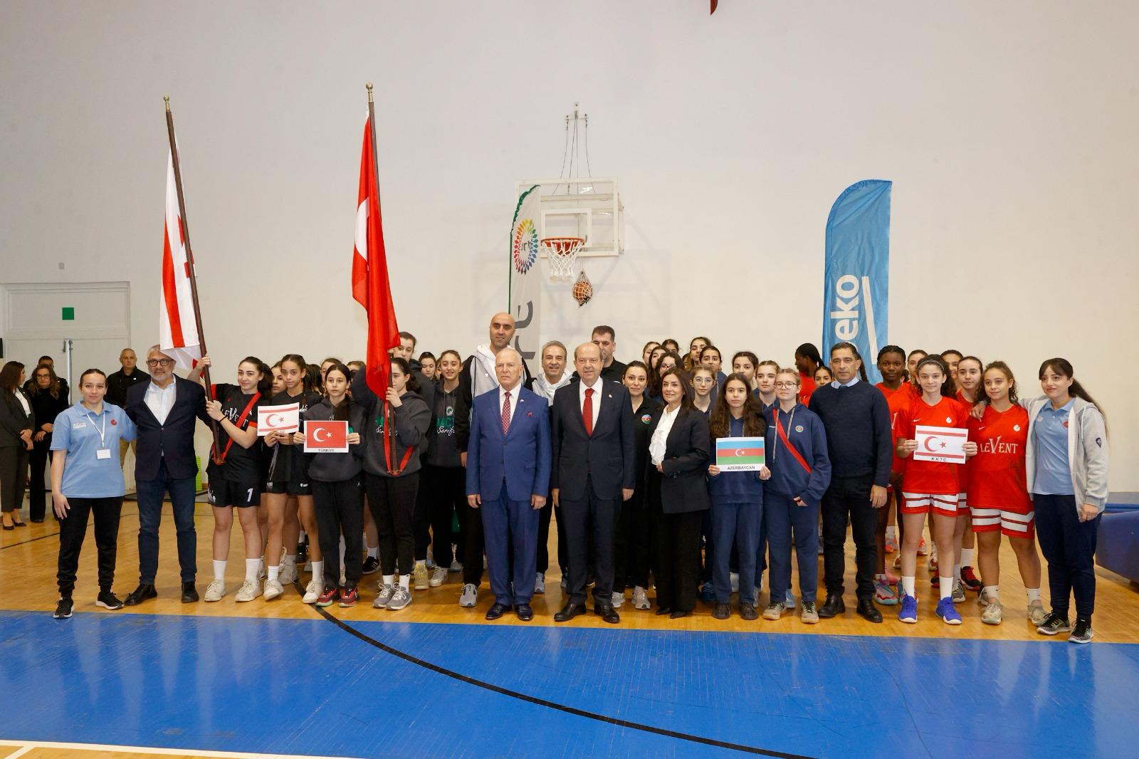 Cumhurbaşkanı Ersin Tatar, Bayrak Radyo Televizyon Kurumu’nun (BRTK) 60’ıncı kuruluş yıl dönümü etkinlikleri kapsamında Levent Okulları tarafından düzenlenen “Tek Ruh, Tek Zafer” temalı BRT U-16 Kadınlar Basketbol Turnuvası’nın açılışına katıldı.