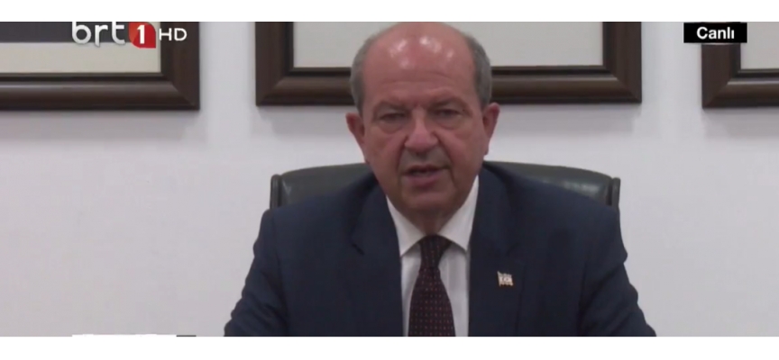 Cumhurbaşkanı Tatar dönüşünün ardından Ercan Havalimanı’nda basın toplantısı düzenledi.