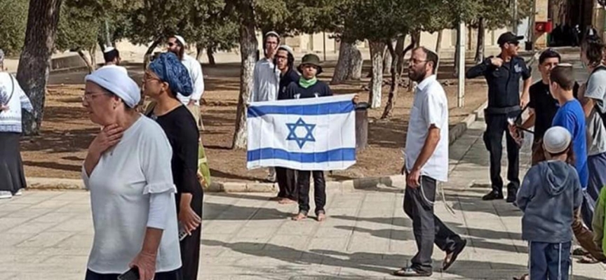 Kudüs İslami Vakıflar İdaresi, İsrail bayrağı açan Yahudi grubun, Harem-i Şerif’in avlularında dolaştıktan sonra Mescid-i Aksa’dan ayrıldığını bildirdi.