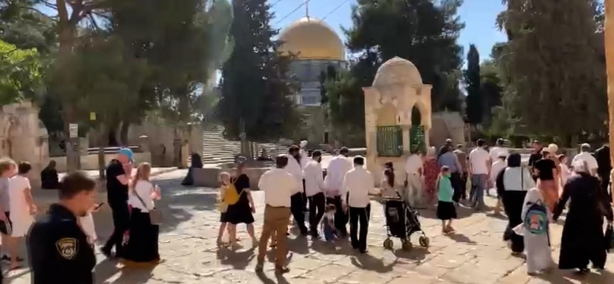 Sukot Bayramı’nın başladığı günden bu yana binlerce fanatik Yahudi, sabah ve öğleden sonra Mescid-i Aksa’nın avlularına girmişti.