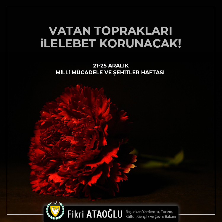 Ataoğlu, “21-25 Aralık Milli Mücadele ve Şehitler Haftası” mesajında 1963’ün Kıbrıs Türk halkının vatanını, bağımsızlığını ve onurunu koruma azmiyle dolu destanının başlangıcı olduğunu belirterek, “Şehitlerimizin verdiği mücadele ve fedakarlık bugünkü güçlü Kuzey Kıbrıs Türk Cumhuriyeti’nin temellerini atmıştır” dedi.