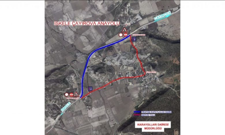İskele-Çayırova anayolundaki bölünmüş yol yapım çalışmaları nedeni ile Kalecik-Tuzluca kavşakları arası 20 Eylül Pazartesi sabah saat 10.00’dan itibaren trafiğe kapatılacak.