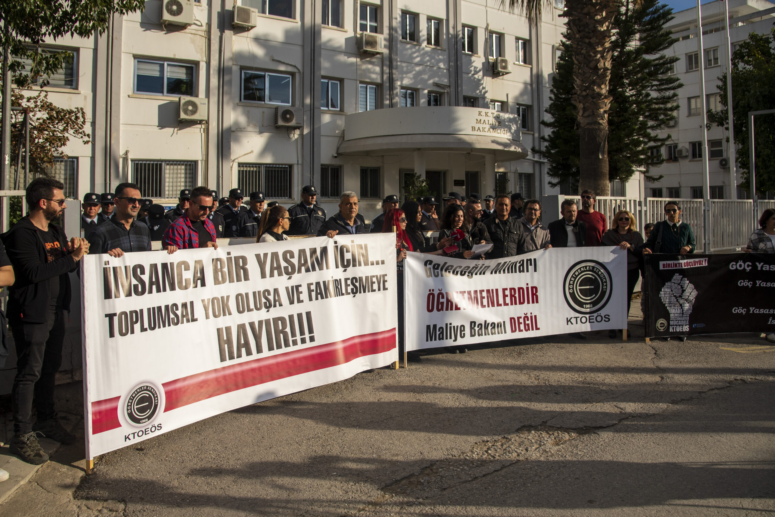 Kıbrıs Türk Orta Eğitim Öğretmenler Sendikası (KTOEÖS) , göç yasası kapsamındaki öğretmen ve tüm çalışanların haklarını savunmak için Maliye Bakanlığı önünde eylem düzenledi.