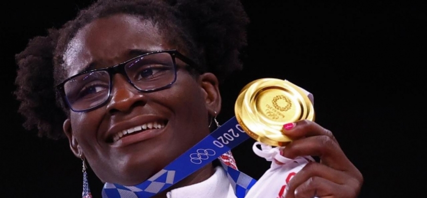 Japonya’da düzenlenen oyunların kadınlar güreş 68 kilo finalinde mücadele eden 28 yaşındaki Mensah-Stock, Nijeryalı Blessing Oborududu’yu yenerek bir ilki başardı.