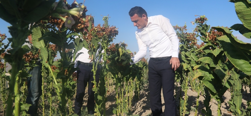 Tarım ve Doğal Kaynaklar Bakanı Dursun Oğuz, Balıkesir bölgesinde ekilen 150 dönümlük tütünün bugün yapılan hasadını inceledi.