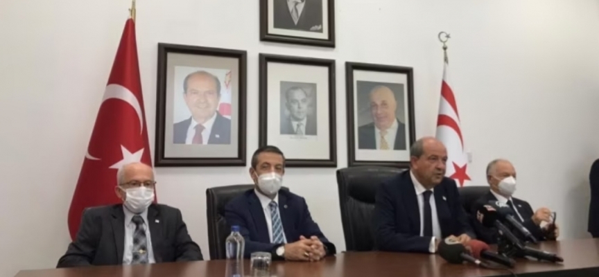 Tatar’a, basın toplantısında, Dışişleri Bakanı Tahsin Ertuğruloğlu, Özel Temsilci Ergün Olgun ile Müzakere Heyeti Üyesi Osman Ertuğ eşlik etti.