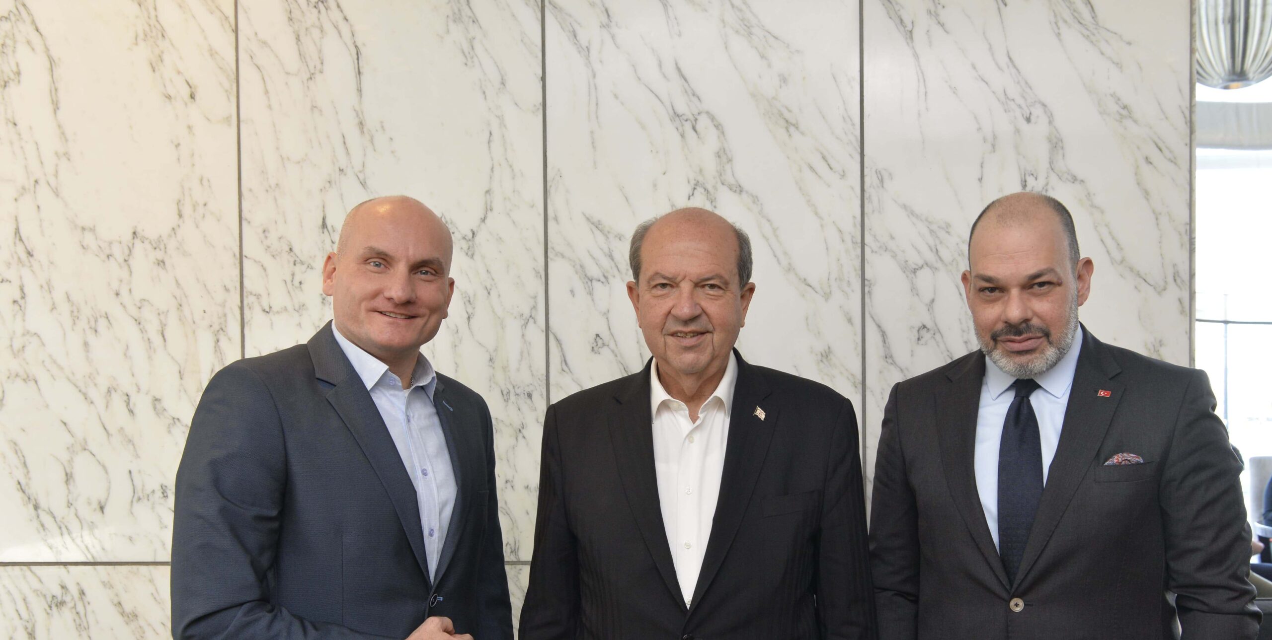 Cumhurbaşkanı Ersin Tatar, Polonya temasları kapsamında, Polonya Turizm Odası Başkanı Pawel Niewiadomski ve Turizm Odası Genel Sekreteri Pawel Radolinski ile bir araya geldi.