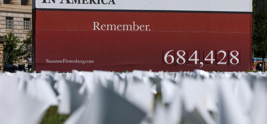 Bu bayraklar ABD’de salgın sebebiyle şu ana kadar hayatını kaybeden 684 bin 428 kişiyi simgeliyor ve bu rakam her dakika güncelleniyor. Çünkü günde binden fazla kişi hayatını kaybediyor.
